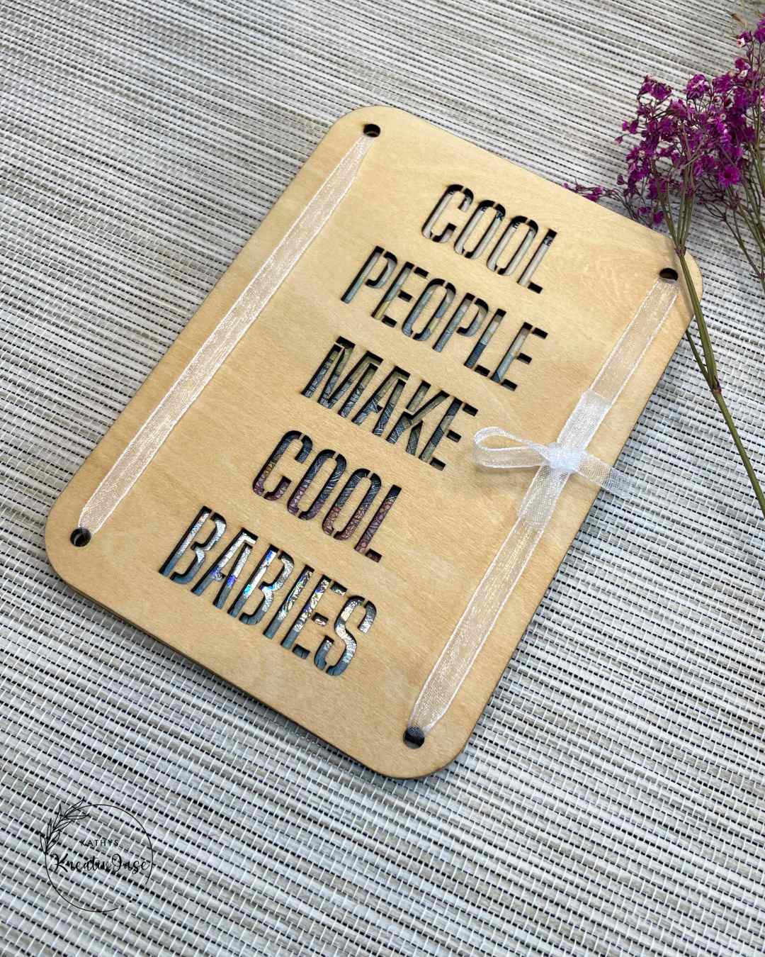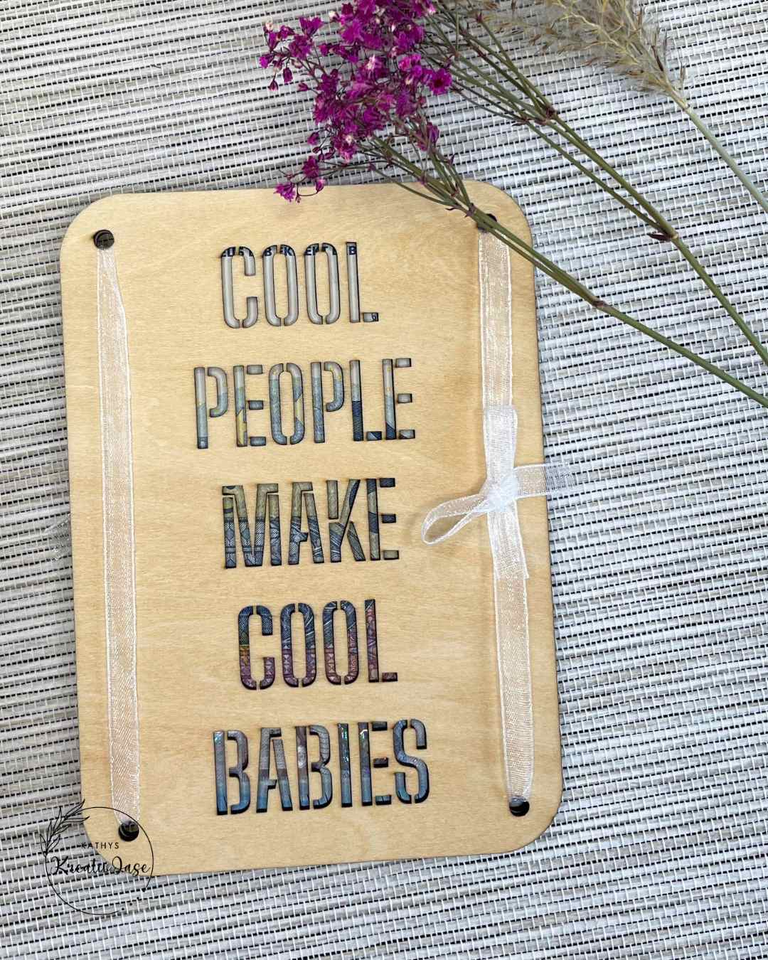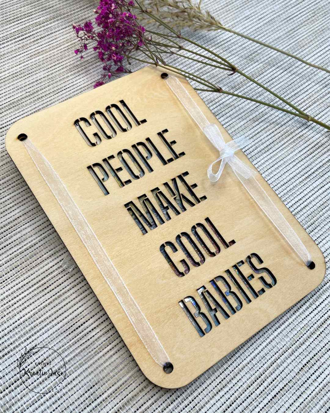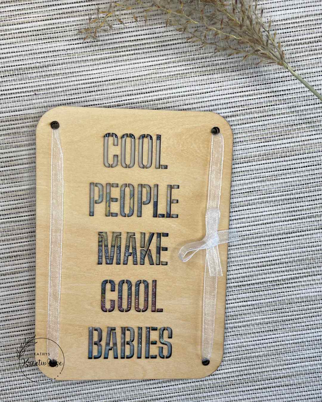 Holz-Grußkarte „Cool People“ mit Durchblick