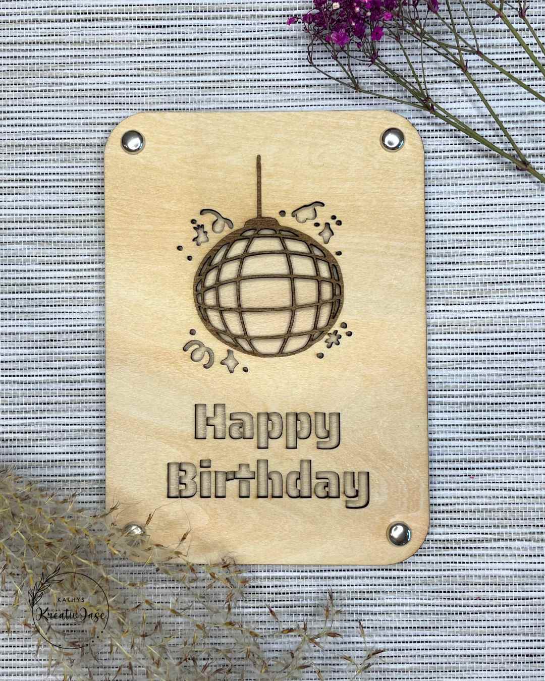 Diese besondere Grußkarte aus Sperrholz ist mehr als nur eine Karte – sie ist Geschenkverpackung und Erinnerung zugleich.
