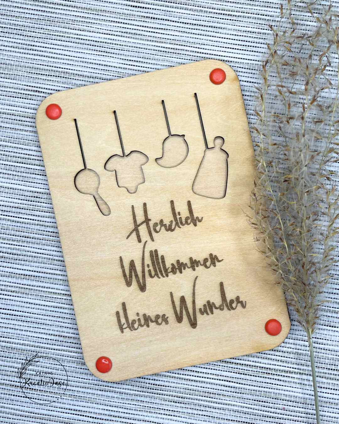 Diese besondere Grußkarte aus Sperrholz ist mehr als nur eine Karte – sie ist Geschenkverpackung und Erinnerung zugleich.